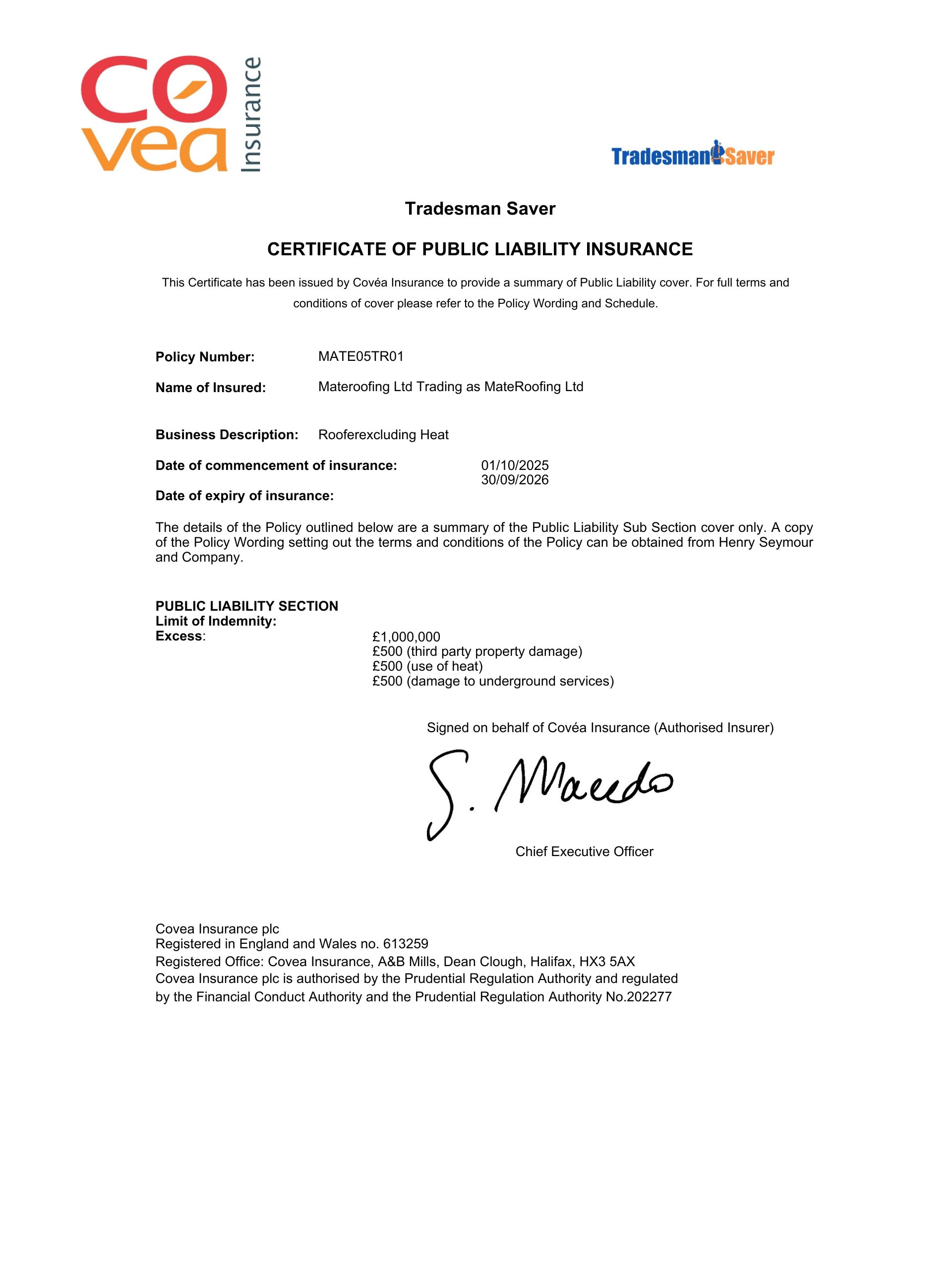 MateRoofing is fully certified and insured, giving you complete peace of mind that your property is in safe, professional hands.